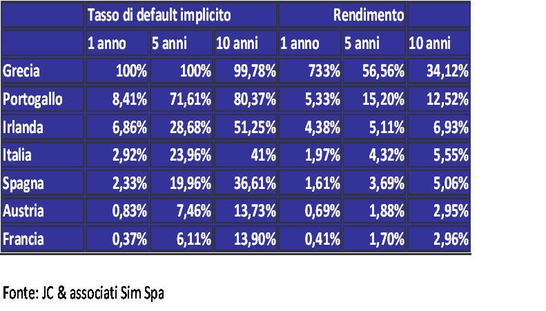 Questo week-end è stato denso di incontri per ristabilire un pò di ordine nella ristrutturazione del debito greco ed a tale proposito sono stati elaborati dati sulla probabilità che anche altri stati nella zona euro facciano la stessa fine. Gli analisti ed investitori di tutto il mondo stanno cercando di capire se paesi quali l’Italia, la Spagna ma anche la più blasonata e solida Francia possano esporre a rischi e soprattutto in quale misura. Per fare questo può essere utile prendere in considerazione il tasso di default implicito dei paesi derivante dai CDS (credit default swap) sulle varie scadenze ed il rendimento offerto dai governativi.