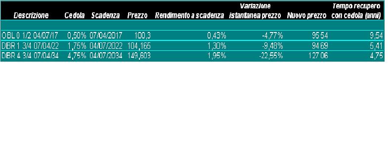 La tabella indica le variazioni istantanee Bund tedeschi relative ad uno spostamento parallelo della curva rendimenti su tutte le durate di un punto percentuale