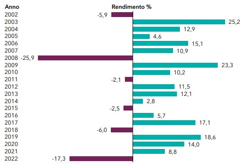 Mai un caffè sarebbe stato più amaro, della constatazione che i 100.000 euro investiti nel marzo 2000 erano ancora 101.968 euro con un rendimento annuo lordo (delle tasse) dello 0,19%. Con un max drawdown sopportato nel periodo del 50,97%!