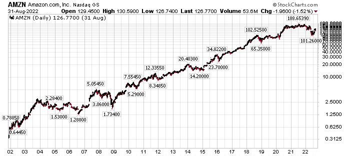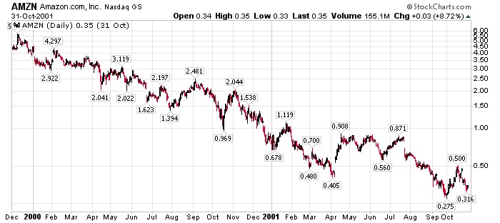 Nel caso di Amazon avrebbe fatto perdere un 93% dal 1999 al 2001 ma poi non avrebbe consentito di realizzare nei successivi 20 anni…